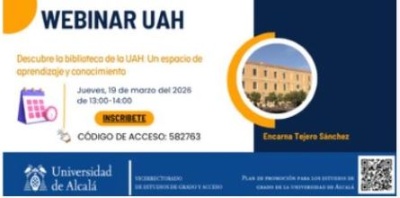 La Biblioteca Universitaria ha realizado un webinar en colaboración con el Vicerrectorado de Estudios de Grado y Acceso de la UAH, titulado "Descubre la Biblioteca de la UAH. Un espacio de aprendizaje y conocimiento" y dirigido a estudiantes de Secundaria, 4º ESO, FP y Bachillerato.